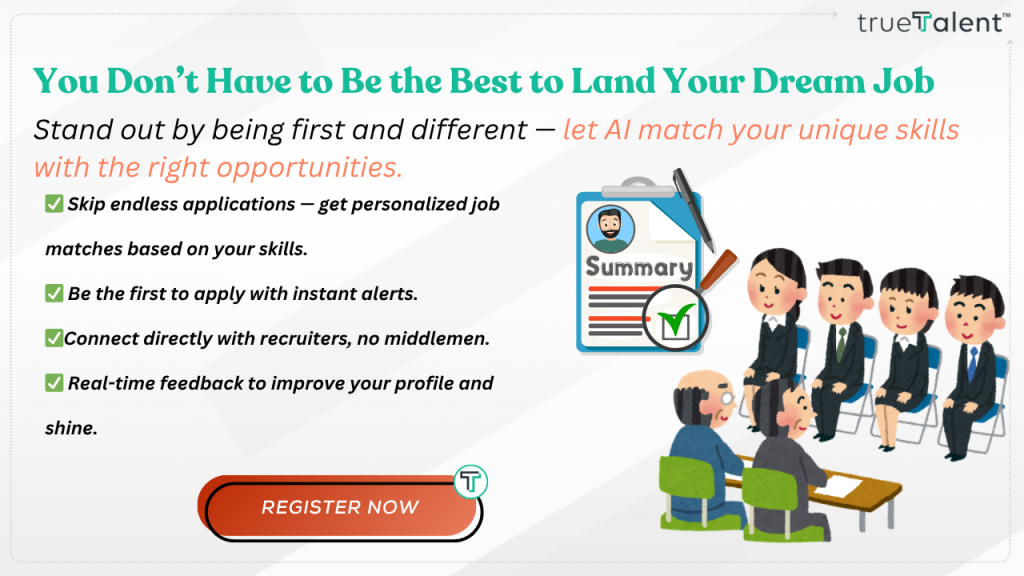 Enter TrueTalent, an AI-powered platform that’s redefining the way people find jobs. By harnessing cutting-edge technology, TrueTalent aims to help you be the first to discover opportunities and stand out for what makes you unique. Here’s how you can stay ahead using personalized, skills-based job matching.